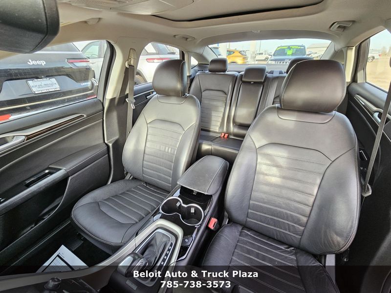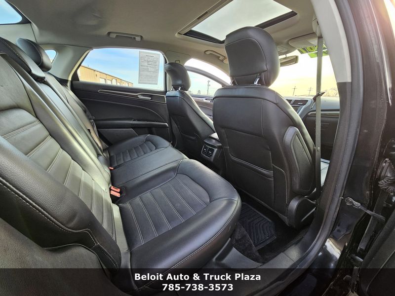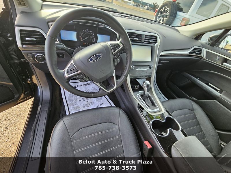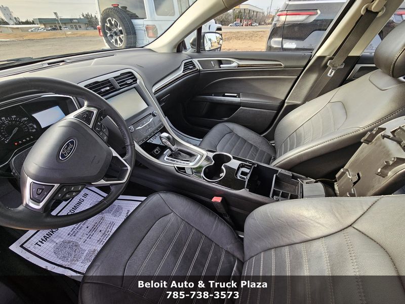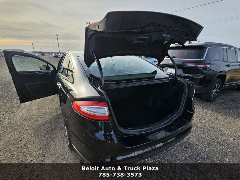 IIHS Top Safety Pick+. Only 97,921 Miles! Scores 37 Highway MPG and 25 City MPG! This Ford Fusion boasts a Intercooled Turbo Regular Unleaded I-4 1.5 L/91 engine powering it's smooth transmission. Wireless Phone Connectivity, Wheels: 17 Aluminum, Wheels w/Painted Accents.*This Ford Fusion Comes Equipped with These Options *Trunk Rear Cargo Access, Trip Computer, Transmission: 6 Speed Automatic w/SelectShift, Transmission w/SelectShift Sequential Shift Control, Tires: P235/50R17 BSW All Season, SYNC Communications & Entertainment System -inc: MyFord, 911 Assist, VHR, SYNC Services, Bluetooth, steering wheel controls, USB port and auxiliary input jack, Strut Front Suspension w/Coil Springs, Steel Spare Wheel, Speed Sensitive Variable Intermittent Wipers, Smart Device Integration.* This Ford Fusion is a Superstar! *IIHS Top Safety Pick+, KBB.com 10 Best Sedans Under $25,000, KBB.com 10 Best Hybrid Cars Under $30,000, KBB.com Brand Image Awards.* Expert Reviews!*As reported by KBB.com: If you?re looking for a sporty sedan, a luxurious touring car, a fuel-efficient family car or just something to impress the neighbors, you?ll find it all in the 2014 Ford Fusion.* Visit Us Today *Test drive this must-see, must-drive, must-own beauty today at Beloit Auto and Truck Plaza, 3133 US Hwy 24, Beloit, KS 67420.