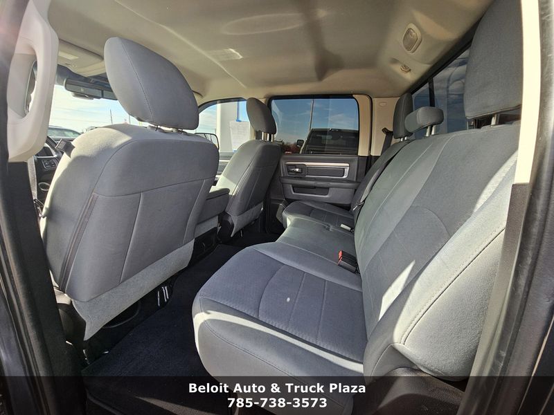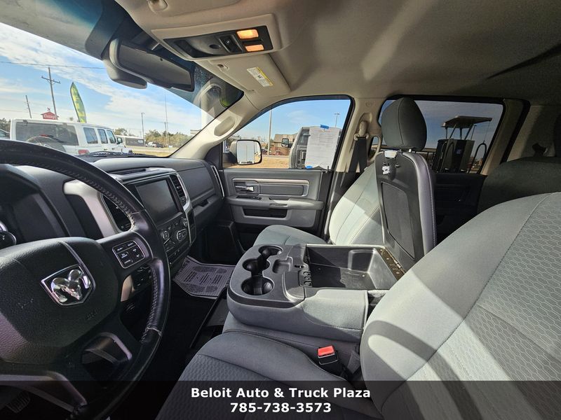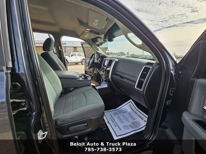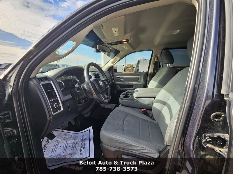 Delivers 21 Highway MPG and 15 City MPG! This Ram 1500 delivers a Regular Unleaded V-8 5.7 L/345 engine powering this Automatic transmission. WHEELS: 17 X 7 ALUMINUM (STD), WHEEL TO WHEEL SIDE STEPS, TRANSMISSION: 8-SPEED AUTOMATIC (8HP70).* This Ram 1500 Features the Following Options *TRAILER BRAKE CONTROL, TIRES: P265/70R17 BSW AS (STD), SPRAY IN BEDLINER, REMOTE START & SECURITY ALARM GROUP -inc: Remote Start System, Security Alarm, PARKVIEW REAR BACK-UP CAMERA, MAXIMUM STEEL METALLIC CLEARCOAT, GVWR: 6,900 LBS, FOG LAMPS, ENGINE: 5.7L V8 HEMI MDS VVT -inc: Next Generation Engine Controller, Hemi Badge, Heavy Duty Transmission Oil Cooler, Electronically Controlled Throttle, Heavy Duty Engine Cooling, DIESEL GRAY/BLACK, CLOTH 40/20/40 BENCH SEAT.* Stop By Today *Stop by Beloit Auto and Truck Plaza located at 3133 US Hwy 24, Beloit, KS 67420 for a quick visit and a great vehicle!