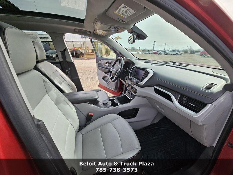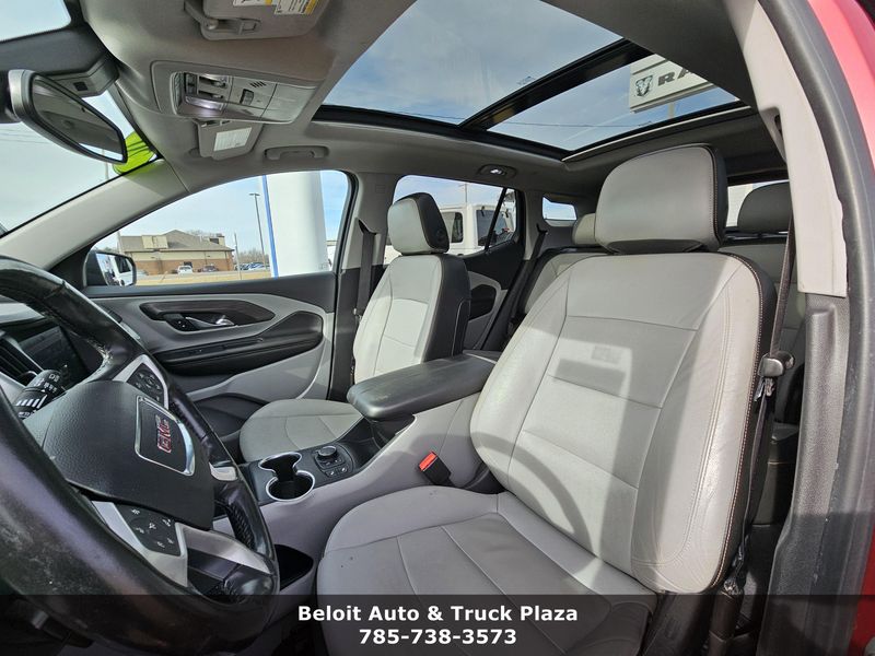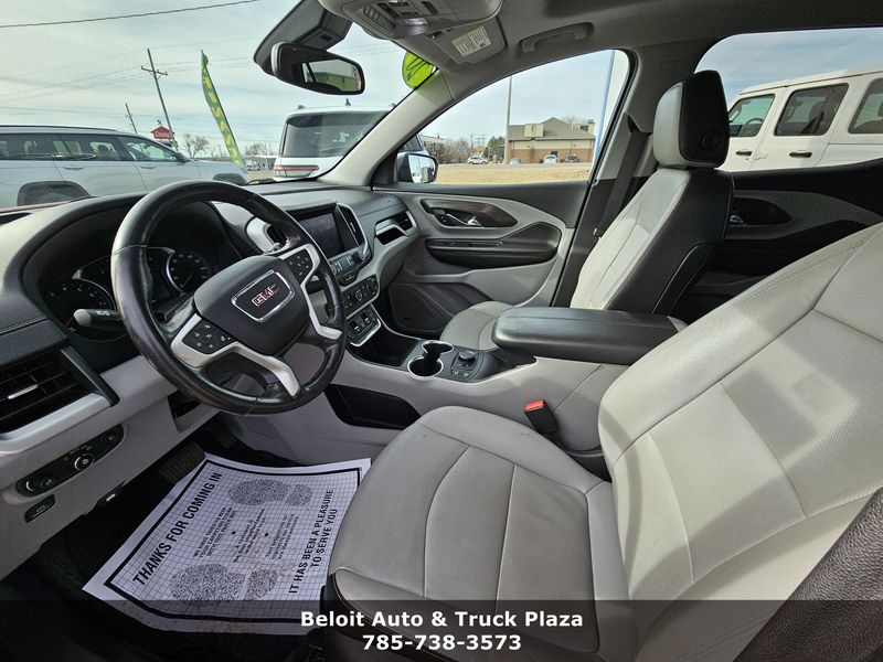Only 57,279 Miles! Scores 30 Highway MPG and 26 City MPG! This GMC Terrain boasts a Turbocharged Gas/E15 I4 1.5L/92 engine powering this Automatic transmission. WHEELS, 19 X 7.5 (48.3 CM X 19.1 CM) MACHINED ALUMINUM with Gray painted accents, UNIVERSAL HOME REMOTE includes garage door opener, 3-channel programmable, TRANSMISSION, 9-SPEED AUTOMATIC 9T45, ELECTRONICALLY-CONTROLLED WITH OVERDRIVE (STD).*This GMC Terrain Comes Equipped with These Options *TIRES, P235/50R19 ALL-SEASON BLACKWALL, TIRE, SPARE, T135/70R16 BLACKWALL (STD), SUNROOF, SKYSCAPE POWER WITH POWER SUNSCREEN, STEERING WHEEL, HEATED, SLT PREFERRED EQUIPMENT GROUP Includes Standard Equipment, SEATS, FRONT BUCKET (STD), RADIO, HD, ENGINE, 1.5L TURBO DOHC 4-CYLINDER, SIDI, VVT (170 hp [127.0 kW] @ 5600 rpm, 203 lb-ft of torque [275.0 N-m] @ 2000 - 4000 rpm) (STD), AXLE, 3.47 FINAL DRIVE RATIO, Windows, power with rear Express-Down.* Visit Us Today *Treat yourself- stop by Beloit Auto and Truck Plaza located at 3133 US Hwy 24, Beloit, KS 67420 to make this car yours today!