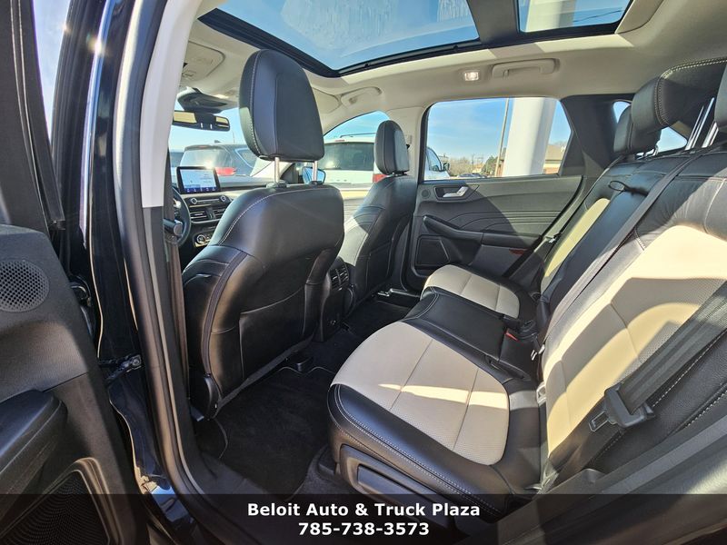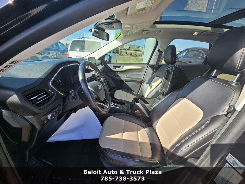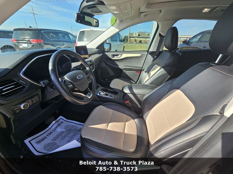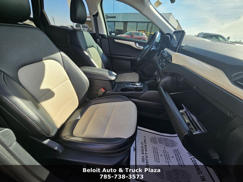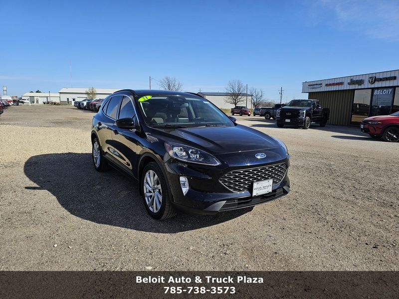 ===== 2021 Ford Escape Titanium Hybrid =====Experience the perfect mix of *fuel efficiency, technology, and premium comfort* in this *2021 Ford Escape Titanium Hybrid*. With impressive hybrid performance and upscale features, this SUV is ready for daily commutes, family trips, and everything in between.==== Performance & Efficiency ==== * 2.5L Gas/Electric Hybrid I-4 Engine * Smooth *eCVT Automatic Transmission* * *43 MPG City / 37 MPG Highway* fuel economy * Driver Selectable Drive Modes * Front Strut Suspension with Coil Springs for a smooth ride==== Technology & Connectivity ==== * *SYNC 3 Communications & Entertainment System* * 8 LCD Capacitive Touchscreen with Swipe Capability * *Apple CarPlay & Android Auto? Compatibility* * Enhanced Voice Recognition System * AppLink Smartphone Integration * Wireless Phone Connectivity * Two Smart-Charging USB Ports * 911 Assist Emergency Communication System==== Safety & Driver Convenience ==== * Tire Pressure Monitoring System * Tire Mobility Kit * Tracker System * Valet Mode * Trip Computer for easy driving data * Power Door Locks with Tailgate/Rear Door Lock Integration==== Exterior & Wheels ==== * Stylish *19 Wheels with All-Season Tires (225/55R19)* * Power Tailgate with Auto-Latch----------------------------------------==== Stop By Today ====Don't miss your chance to drive this *efficient and fully equipped 2021 Ford Escape Titanium Hybrid*.*Beloit Auto & Truck Plaza*3133 US Hwy 24Beloit, KS 67420*Just minutes away --- come see why we make it easy!*