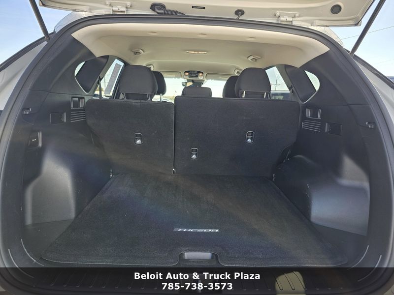 Scores 29 Highway MPG and 24 City MPG! This Hyundai Tucson delivers a Regular Unleaded I-4 2.5 L/152 engine powering this Automatic transmission. OPTION GROUP 01 -inc: standard equipment, CARPETED FLOOR MATS, CARGO TRAY.*This Hyundai Tucson Comes Equipped with These Options *CARGO NET, Variable Intermittent Wipers, Valet Function, Urethane Gear Shifter Material, Turn-By-Turn Navigation Directions, Trip Computer, Transmission w/Driver Selectable Mode, Tracker System, Towing Equipment -inc: Trailer Sway Control, Tire Specific Low Tire Pressure Warning.* Visit Us Today *You've earned this- stop by Beloit Auto and Truck Plaza located at 3133 US Hwy 24, Beloit, KS 67420 to make this car yours today!