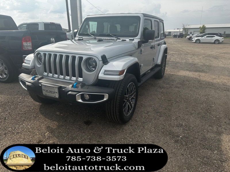 This Jeep Wrangler 4xe delivers a Intercooled Turbo Gas/Electric I-4 2.0 L/122 engine powering this Automatic transmission. TRANSMISSION: 8-SPEED AUTO 8P75PH PHEV (STD), SILVER ZYNITH CLEARCOAT, QUICK ORDER PACKAGE 29P SAHARA -inc: Engine: 2.0L I4 DOHC DI Turbo PHEV, Transmission: 8-Speed Auto 8P75PH PHEV.*This Jeep Wrangler 4xe Comes Equipped with These Options *FRONT LICENSE PLATE BRACKET, ENGINE: 2.0L I4 DOHC DI TURBO PHEV (STD), BLACK, PREMIUM MCKINLEY TRIMMED SEATS, BLACK 3-PIECE HARD TOP -inc: Freedom Panel Storage Bag, Rear Window Defroster, Rear Window Wiper/Washer, Wheels: 20 x 8 Fully Painted Aluminum, Voice Activated Dual Zone Front Automatic Air Conditioning, Variable Intermittent Wipers, Trip Computer, Transmission: 8-Speed Auto 8P75PH PHEV, Transmission w/AUTOSTICK Sequential Shift Control.* Stop By Today *You've earned this- stop by Beloit Auto and Truck Plaza located at 3133 US Hwy 24, Beloit, KS 67420 to make this car yours today!