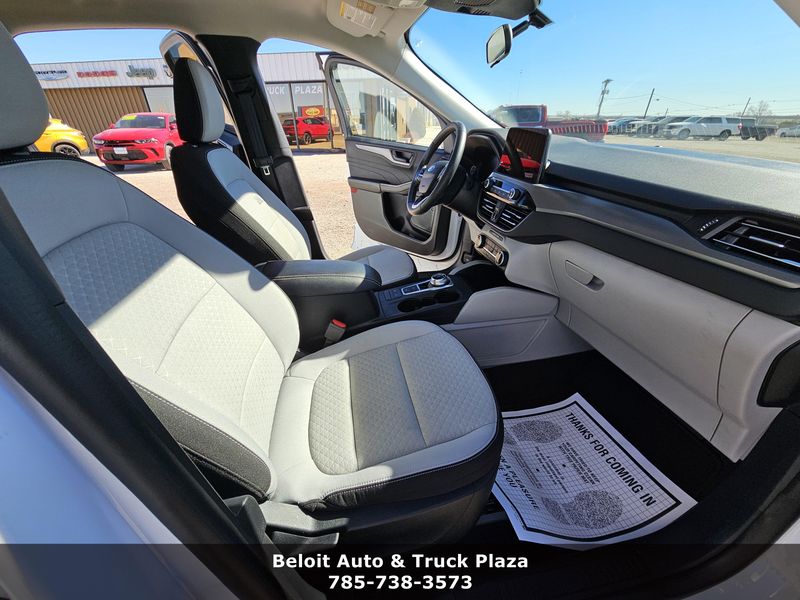 Scores 34 Highway MPG and 27 City MPG! This Ford Escape boasts a Intercooled Turbo Premium Unleaded I-3 1.5 L/91 engine powering this Automatic transmission. ENGINE: 1.5L ECOBOOST -inc: auto start-stop technology (STD), Wireless Phone Connectivity, Wheels: 17 Shadow Silver-Painted Aluminum.*This Ford Escape Comes Equipped with These Options *Valet Function, Unique Cloth Front Bucket Seats -inc: 8-way power driver (fore/aft, up/down, recline, lumbar) and 4-way manual front passenger (fore/aft w/manual recline), Trunk/Hatch Auto-Latch, Trip Computer, Transmission: 8-Speed Automatic, Transmission w/Driver Selectable Mode and Oil Cooler, Tracker System, Tires: 225/65R17 AS BSW, Tire Specific Low Tire Pressure Warning, Tailgate/Rear Door Lock Included w/Power Door Locks.* Stop By Today *Stop by Beloit Auto and Truck Plaza located at 3133 US Hwy 24, Beloit, KS 67420 for a quick visit and a great vehicle!